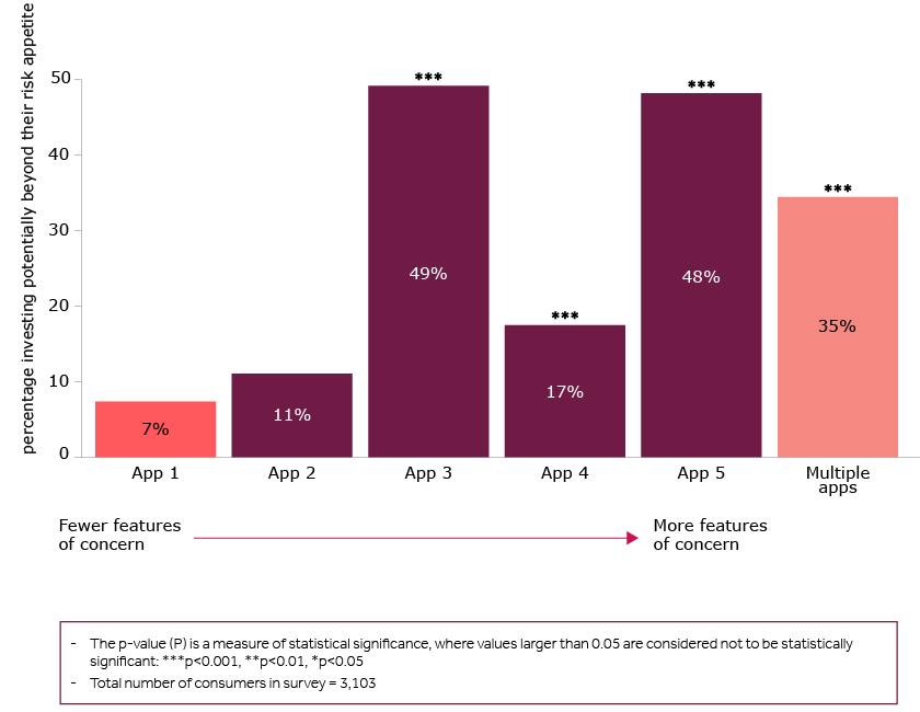 Trading apps using more features of concern were associated with consumers investing potentially beyond their risk appetite, problem gambling behaviours and frequent trading